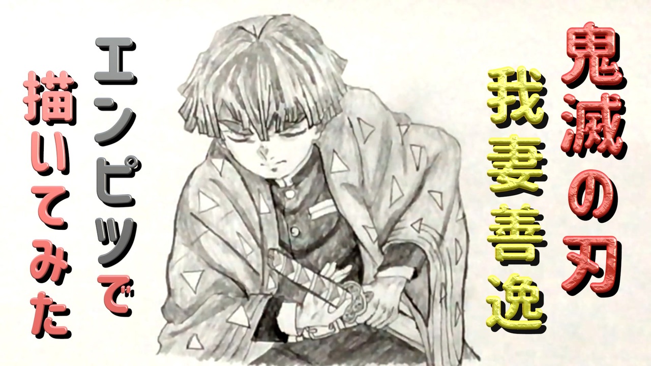 鬼滅の刃 我妻善逸」還暦男がHB鉛筆1本で描いてみた。 - ニコニコ動画